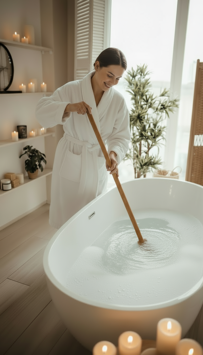 With a form both practical and poised, it ensures the bath reaches the perfect balance of heat and depth. Its extended handle allows effortless stirring, while its sculptural design enables it to stand neatly and confidently in a corner, transforming a simple act into a refined experience.