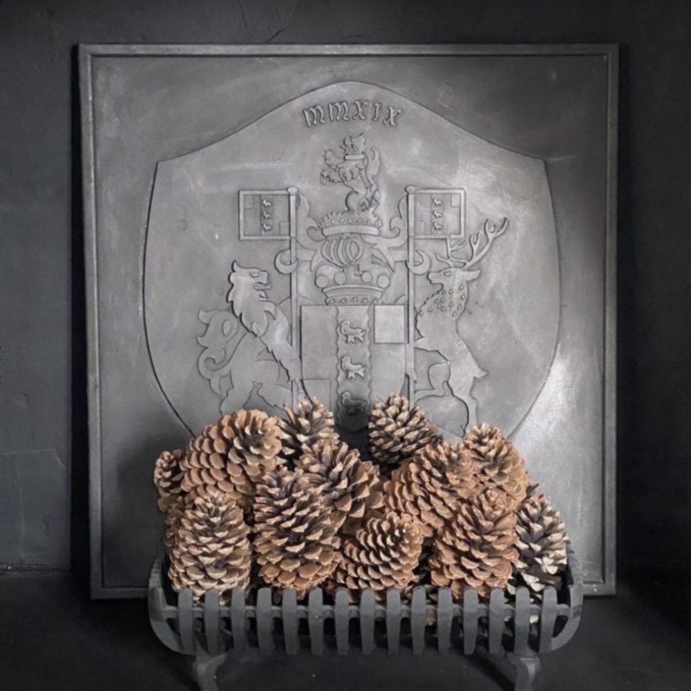 人気のデザインパターンには家紋やエンブレム、あるいはより現代的なモチーフが含まれます。各暖炉背板は、建築環境と調和するようお客様との対話を通じてデザインされます。